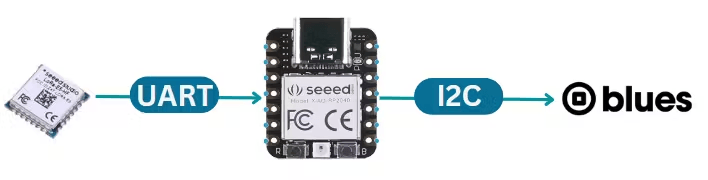受信側では、I2Cポートを使用してBlues WirelessノートカードをXIAO RP2040に接続します。Wio E5はUARTポートを介して既に接続されています。受信ノードはLoRa経由でデータを受信し、Blues Notecardを使用してクラウドにデータを転送します。
