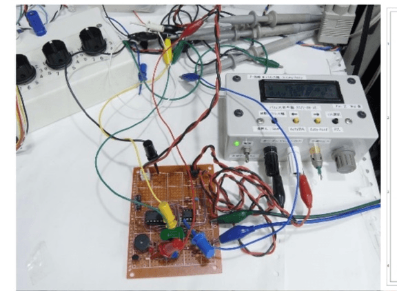 元のブザーのユニークな能力がAC発振によるインピーダンスベースの検出にあることに気づいたチームは、下間氏にACモードとDCモードの両方を備えたハイブリッドデバイスの開発を依頼しました。一連の迅速な設計反復を通じて、彼は発振回路を追加し、1kHzから5kHzまでの周波数を調整し—徐々に以前は見過ごされていた部品の検出を可能にしました。