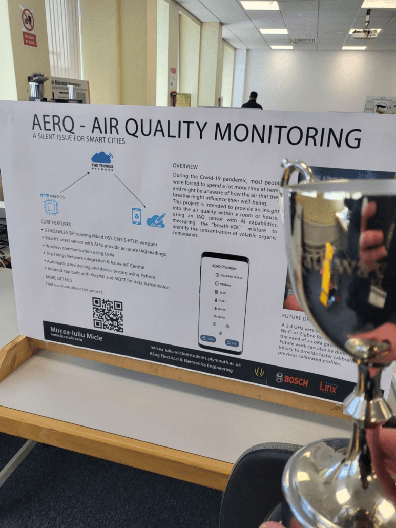 更新情報!!素晴らしいニュースが入りました!素晴らしいプロジェクト「AERQ-室内空気質モニター」でMircea-Iuliu Micle氏がプリマス大学のBEng Pathway Awardを受賞されたこと、心よりお祝い申し上げます。Seeed Wio-E5モジュールとFusion PCBアセンブリサービスを基盤とした彼のプロジェクトをサポートできたことを、私たちは大変嬉しく思います!