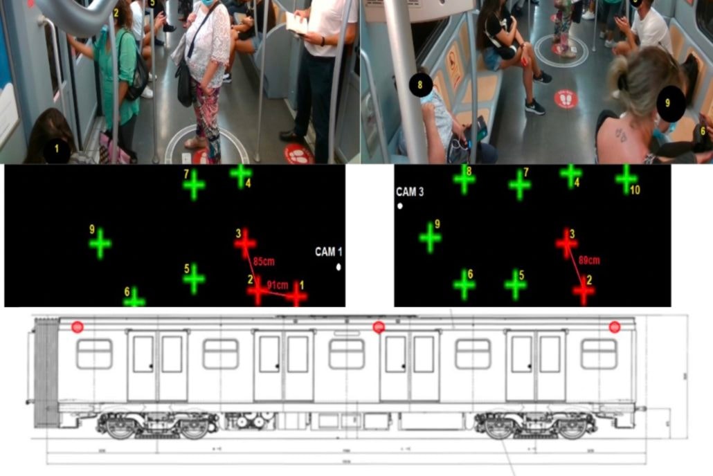 ミラノで展開・徹底テストされた後、識別精度誤差のマージンをわずか1%以内に厳密に制御できることが発見されました。各センサーは現在の状況の瞬時分析を提供できます。さらに、グリッドは対応するセンサーによって可視範囲に戻った乗客の正確な位置を示すように特別に設計されています。他の乗客からの相互距離が1メートル未満の場合、赤い十字が目立つように表示されます。
