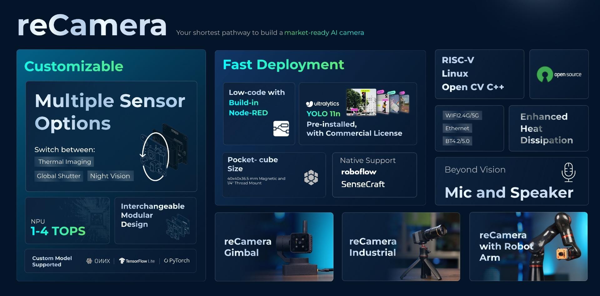 完全オープンソース:ニーズに合わせてreCameraをカスタマイズ。