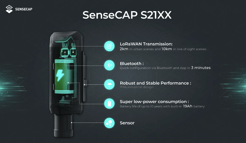 ** このワイヤレスLoRaWANセンサーは最大10年のバッテリー寿命をサポートしますが、実際のバッテリー寿命はデータアップロード間隔、データペイロード、およびゲートウェイ間の距離によって異なります。