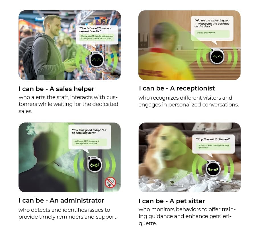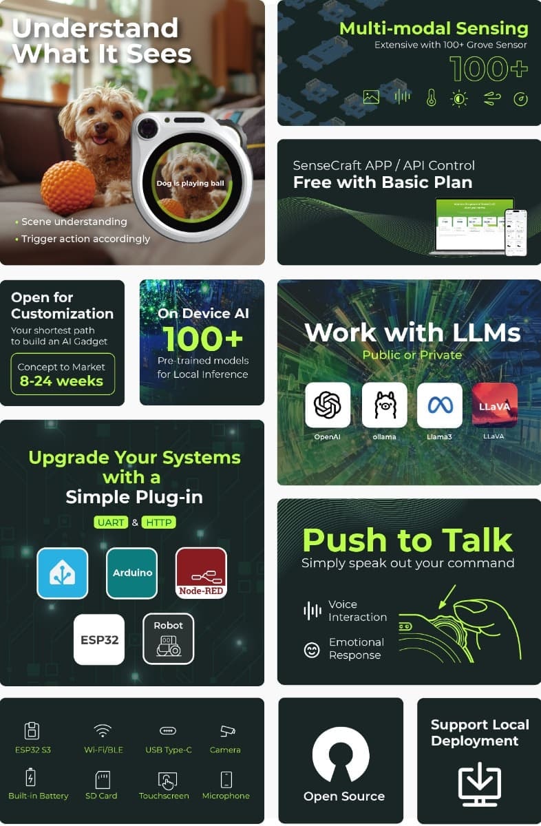 高性能エッジAI推論エンジンを搭載し、SenseCAP Watcherは人物、物品、ペットなど多様なオブジェクトをリアルタイムで識別できます。しかし、Watcherの真の革新性は大規模言語モデルとの深度融合にあります。