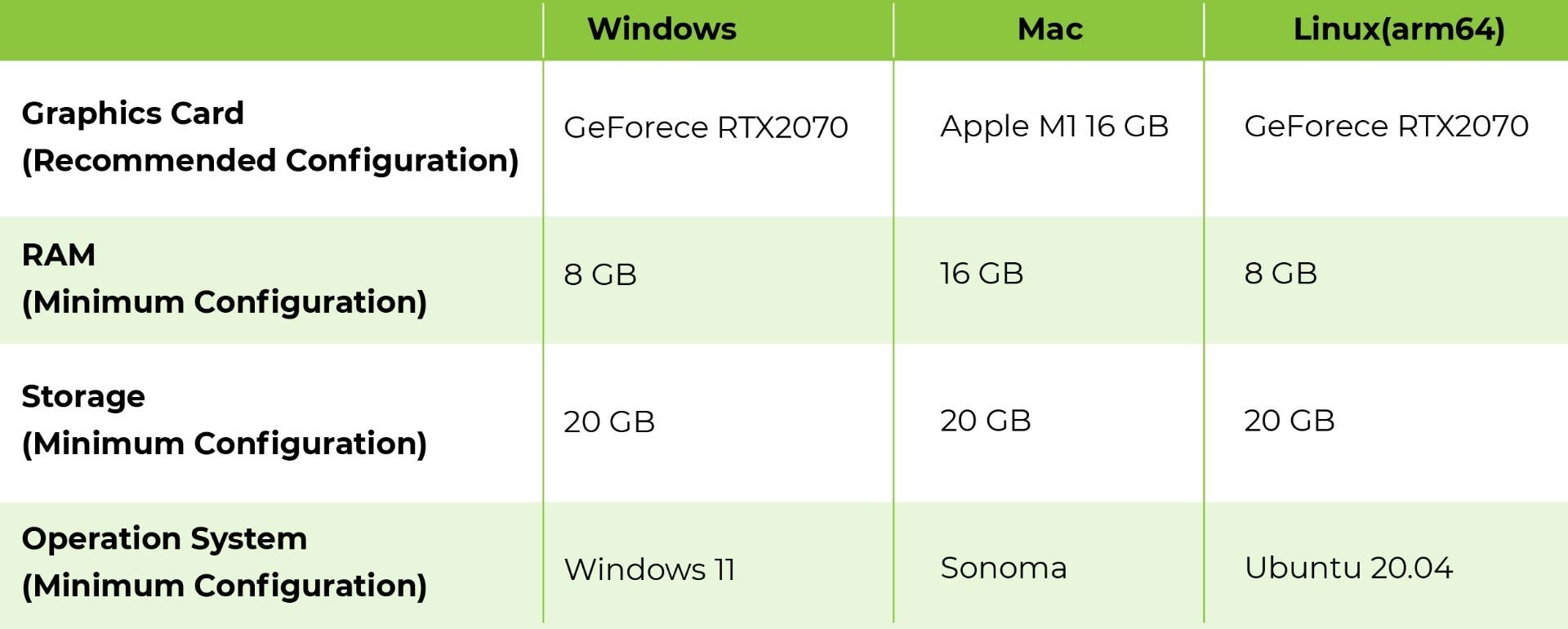 - オンプレミス展開をサポートします。SenseCAP WatcherのバックボーンはSenseCraftソフトウェアスイートで、Watcherの設定、コマンドの解釈、LLMへのアクセスに使用されます。したがって、すべてがプライベートに保存・実行され、モデルやデータがパブリックLLMやパブリッククラウドにストリーミングされないことを保証します。SenseCraftはWindows/MacOS/Linuxで実行できます。SenseCraftにはLLMが含まれているため、コンピューターには一定のパフォーマンス基準が必要です。以下の通りです。